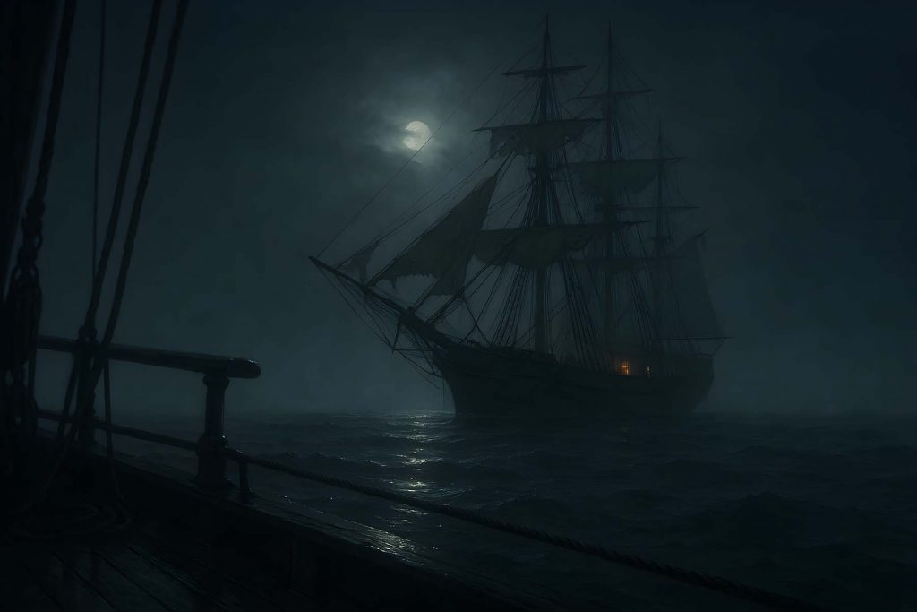 One of the earliest came from a sailor named William Flood, who claimed to have seen the Mary Celeste ghosting through Atlantic fog years later, her deck lit faintly from within. No record of Flood’s service or ship has been verified, and his story exists mainly in retellings that can’t be traced to a publication of record.